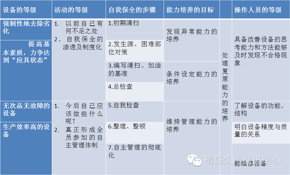 要是没有具备“干劲、方法、场地”三要素,即使有再好的想法也无济于事。关于自主保全的一切活动,大部分依靠本人的能力和士气,明白了为什么必须这样做,还应该彻底做到,这是大多数管理者的经验。不彻底的最大原因就是决定制度的人并非是具体去执行的人,因此,执行的人并不完全了解工作的必要性,也不会完全恪守实施时间。