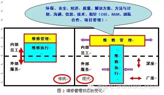 随着时代的变化,让维修管理的范畴进一步扩展,从技术层面看,维修的执行朝着更专业的方向深入,而且维修的外部技术支持也更加专业和深入。其结构如图2所示。