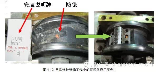 以自主维护对设备重要部位的检查为例,采取应用可视化工具可以取得以下实际效果: