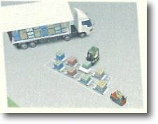 ■叉车A从供货商的卡车上一托盘一托盘的卸载零部件。