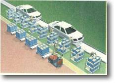 ■使用1台牵引车向生产线配给零部件