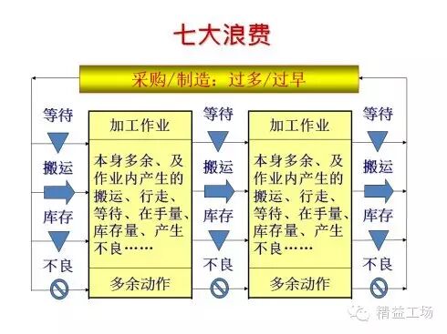 由准时化(JIT)归纳出来的这四个浪费,加上前述由自働化(或称精实化)归纳出来的不良、多余加工作业、多余动作三个浪费,七大浪费就这样形成了。