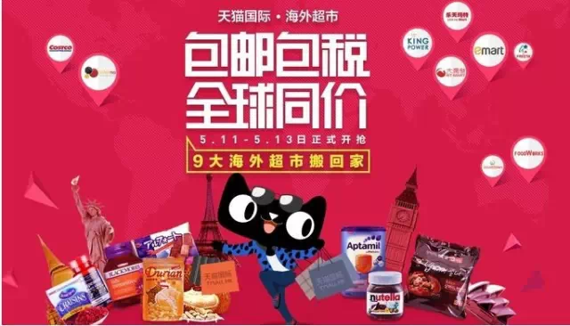 日前,天猫国际与Costco、emart、Lottemart、大润发、Countdown等全球九大超市集团达成独家战略合作,将借助阿里集团整个零售平台体系(天猫、聚划算、淘宝)帮助海外品深耕中国市场。(今年3月,阿里巴巴中国零售事业群成立,淘宝、天猫、聚划算被整合,行癫担任该事业群总裁)