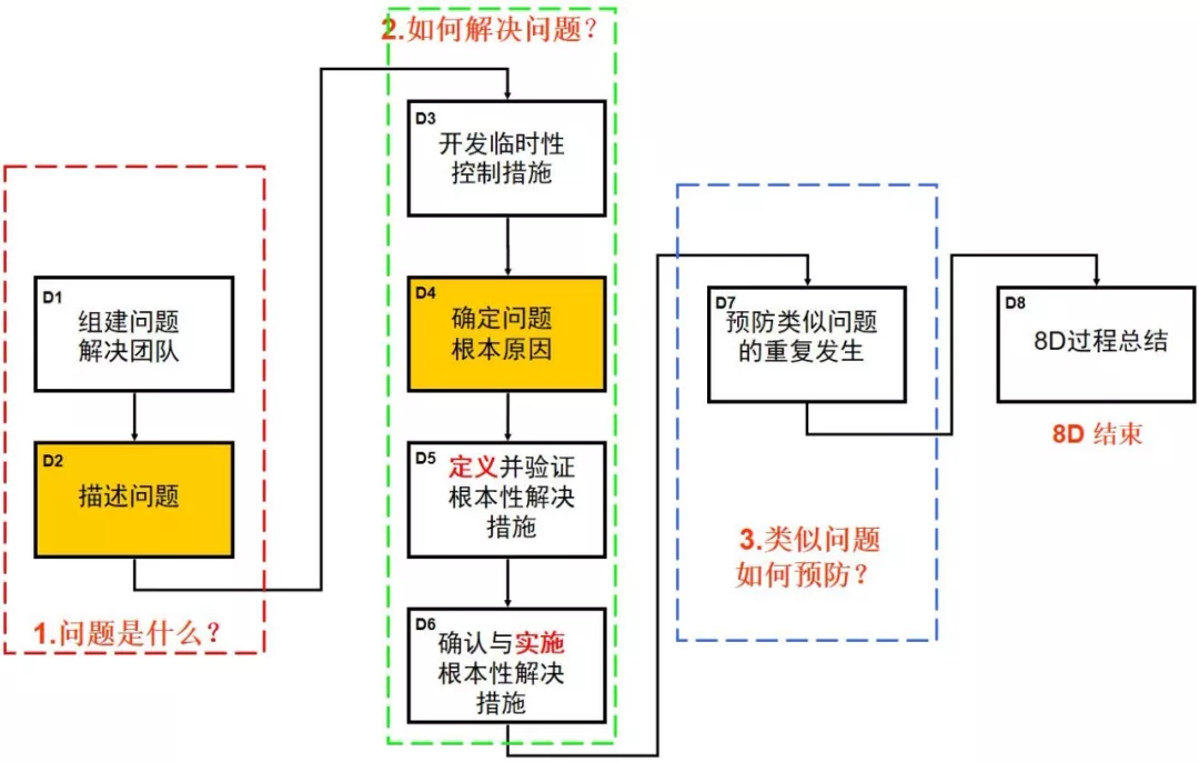 8D方法由8个步骤和1个准备步骤组成,客观地确定、定义和解决问题并防止相似问题的再次发生。