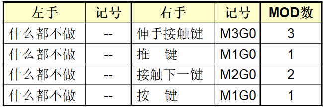 手指的往复动作M1,每一个单程动作的时间为1/2MOD;
